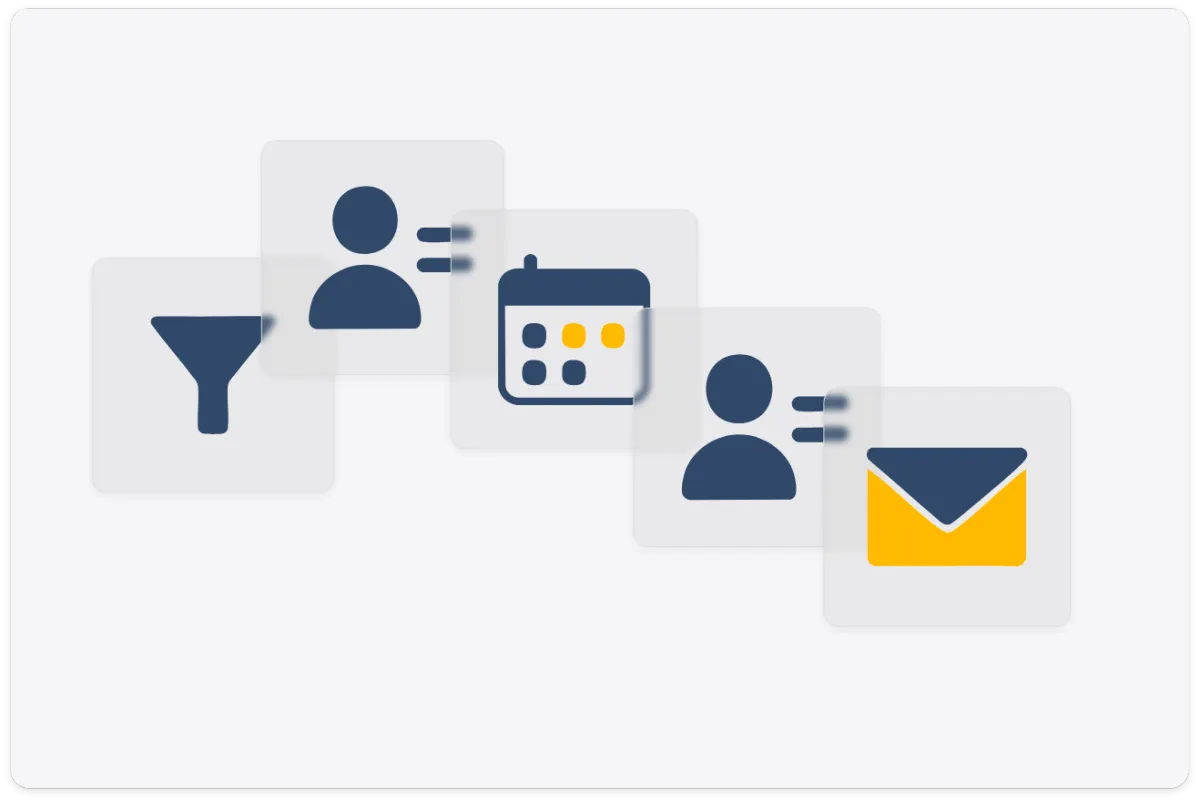 Smart calendar system with booking links, confirmations, reminders, and follow-up flows—fully automated.